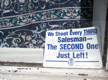 Salesmen Undeterred By "We Shoot Salesmen" Sign